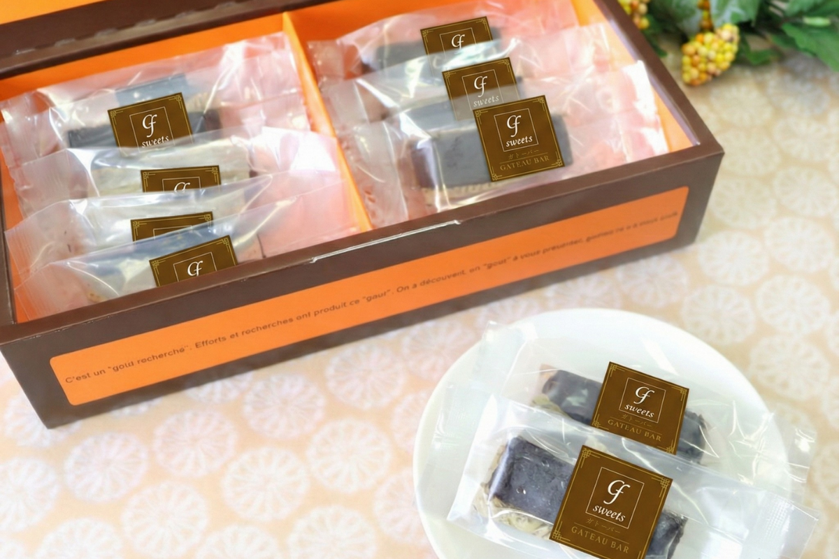 ガトーバーのサイズはヨコ約8cm×タテ約3cmで食べやすいサイズです。1個ずつ個包装しております。